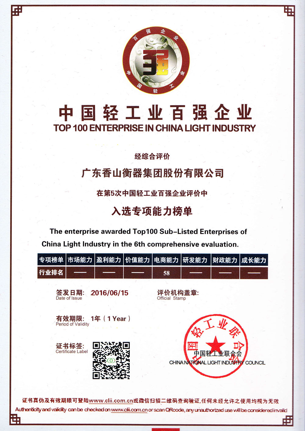 中國輕工業(yè)百強(qiáng)企業(yè)