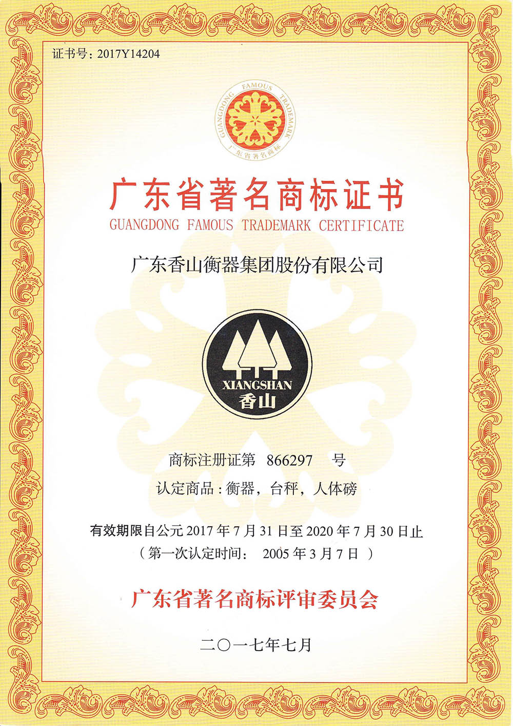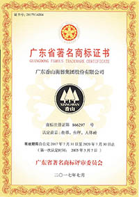 廣東省著名商標(biāo)證書