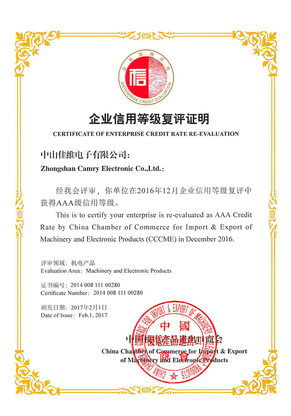 佳維企業(yè)信用等級復(fù)評證明